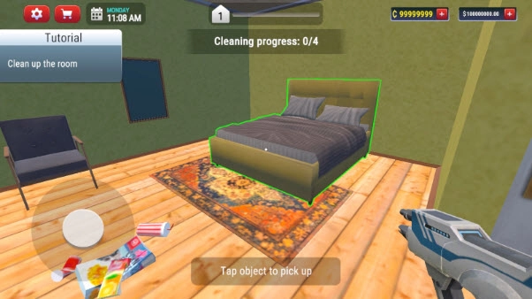 5、每当接取一项任务时,我们都得达成相关要求。就像在下图中,要完成对脏乱房间的清理工作,其中一共有4处位置需要进行清理。
