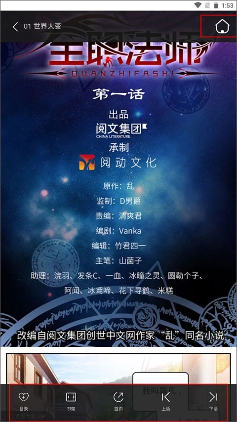 5、开启阅读模式后,你能够点击屏幕中央调出目录查看,或者返回首页。