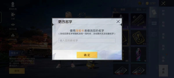 4、最后点开改名道具,填写好你想修改的名字,最后点击确定就可以修改成功了。