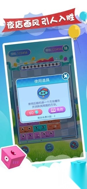 3、特殊的“闪电道具”堪称突破高难度关卡的关键所在,它能够瞬间清除棘手方块。玩家可通过连续消除来积攒能量,在恰当的时机使用该道具,从而扭转战局。