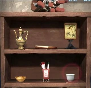 9、封条贴上左下衣箱,右边桌面上的报纸残页有乐器提示,捡起小棒子,桌上旗子也是机关(缺了一个)。