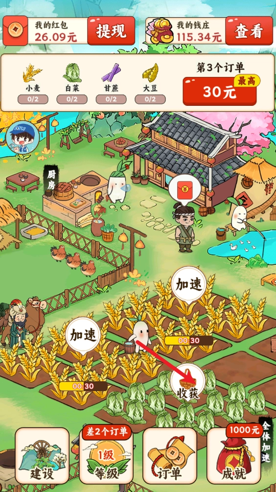 3、前期可以先解锁所有土地,这样能够同时种植更多作物,完成订单也会更快!