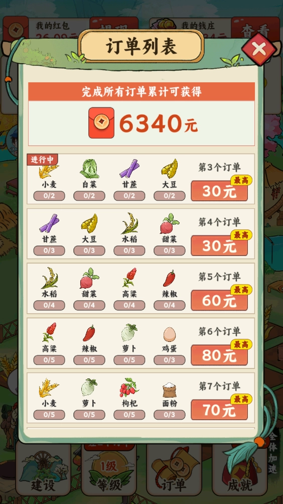 4、你还可以点击下方的订单选项,在这里查看后续订单所需的作物,可以提前做准备。