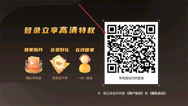 4、手机微信扫码登录后,可立享高清特权及独家新片、会员好礼等权益。