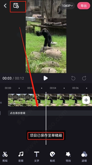 5、设置好时可点击左上角保存到草稿箱中,或是右上角进行导出,即可完成剪辑。