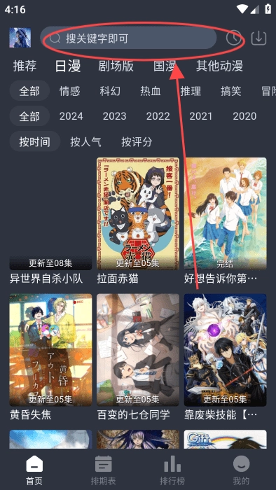3、你可以通过搜索功能输入动漫名称或关键词,快速定位到自己喜爱的动漫资源。
