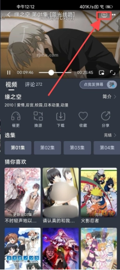 1、在首页挑选一部你喜欢的动漫,例如“缘之空”,点击进入详情页。