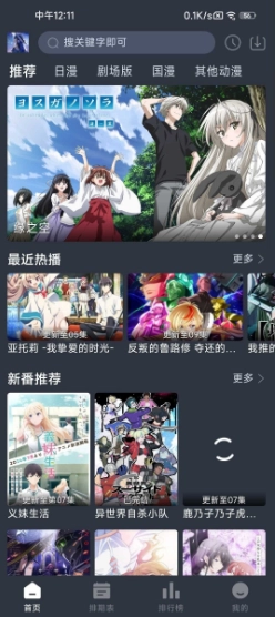 2、首页展示了丰富的分类,包括日漫专区、剧场版以及最新的国漫推荐。