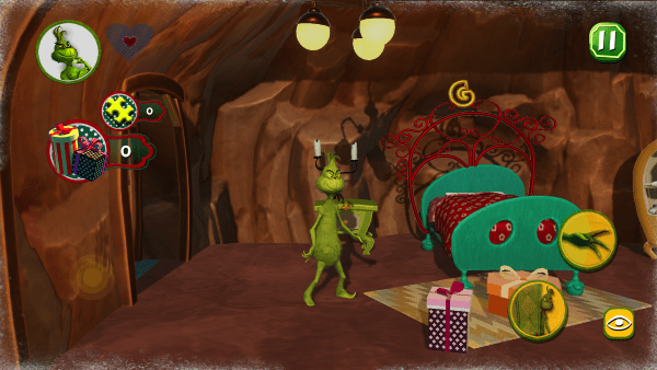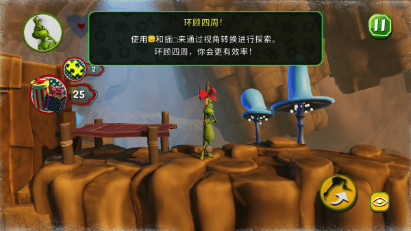2、解锁格林奇的小玩意一一解决谜题并获得能力!扔雪球、假装圣诞老人、使用拐杖糖套索或使用喷气背包跳跃,这样的例子数不胜数!