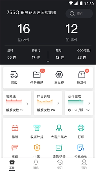 排班、收派计提、大客户集收、打印等工作在线处理。
