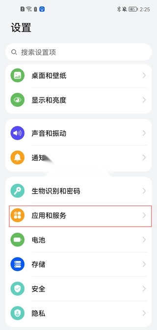 1、第一步,在荣耀手机中找到并开启“设置”应用程序,随后选取“应用和服务”这一选项。