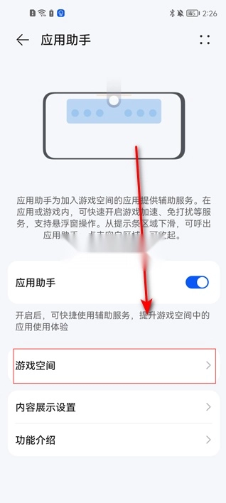 3、于应用助手页面里,找寻并点击“游戏空间”这一选项。