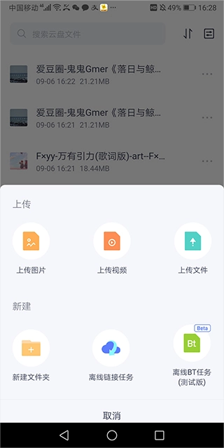 1、打开应用即可根据文件类型将文件上传到云盘中