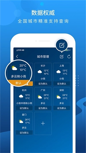 与中央气象台的数据进行实时的更新,提供的天气数据更为准确;