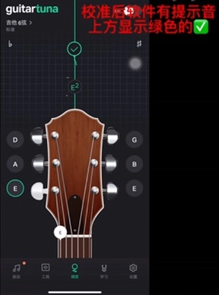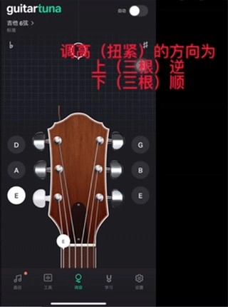 2、拨动对应的琴弦,显示负数提示调高,需要扭紧琴弦
