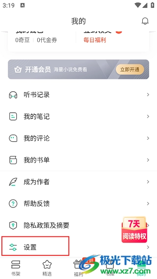 1、来到爱奇艺阅读的首页中,汇集了各种类型的小说资源,接着点击右下角的“我的”选项。
