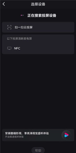 3、进入到投屏界面后,等待设备搜索结果,然后选择你需要进行连接投屏的设备就行了