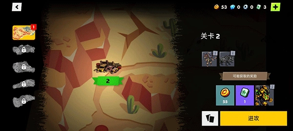 3、选定区域后进入具体关卡,点击“进攻”开始战斗;