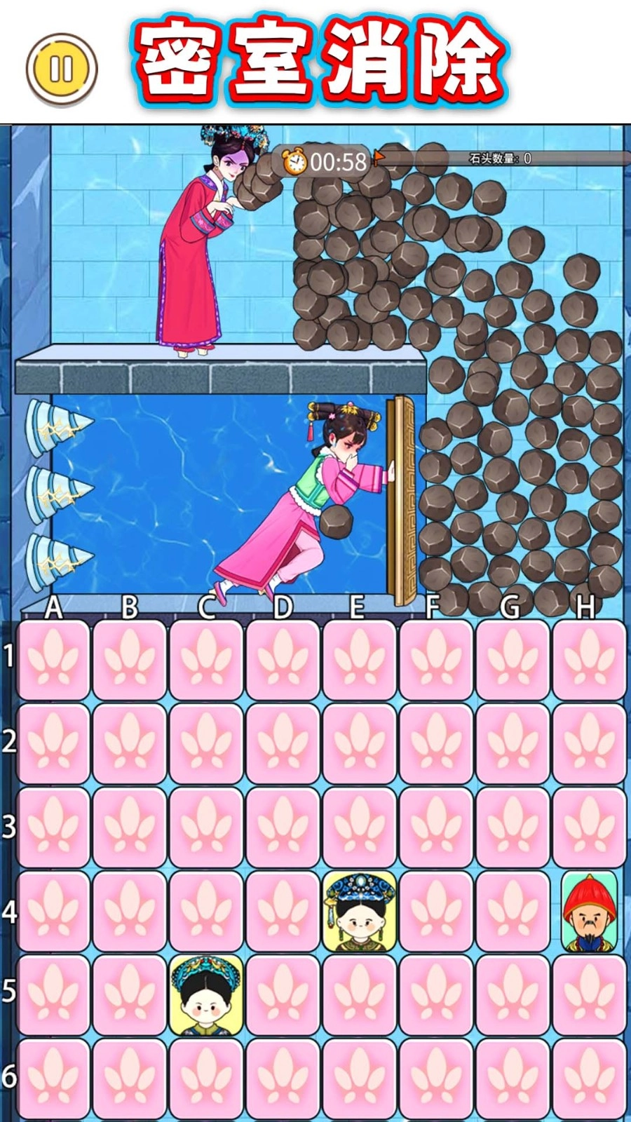 密室消消乐,一款超精彩的趣味三消休闲游戏。在游戏里,你得靠消除来开辟道路,逃离密室,完成闯关。身处密闭空间,机关陷阱缓缓逼近,你必须在规定时间内,灵活移动图案实现消除,减少石头阻拦。要是超时,角色就会直接死亡,闯关失败。所以,一定要集中精力,仔细观察、部署,避免任何失误和意外,如此才能最大程度提高效率与成功率。尤其要注意拓展和疏通空间,确保道路通畅,快速前进,不然很容易在中途遭遇各种阻碍而失败。感兴趣的小伙伴,快来体验一下,这款游戏的可玩性超高哦!