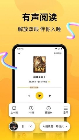 1、拾光小说配备语音听书功能,让用户可以通过听书形式解放双眼,享受别样的阅读愉悦。