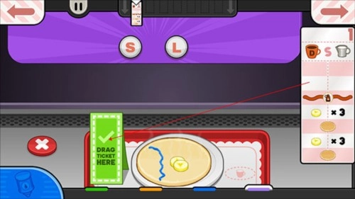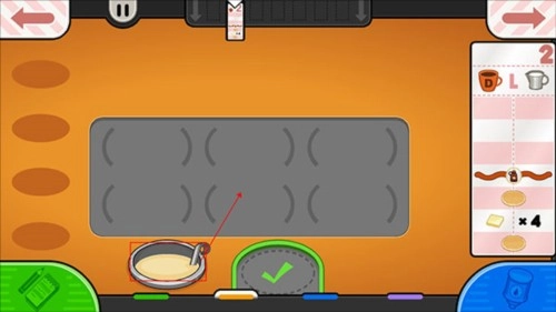 3、确认订单后进入厨房操作区域,拖动面糊至烤盘进行烘烤。