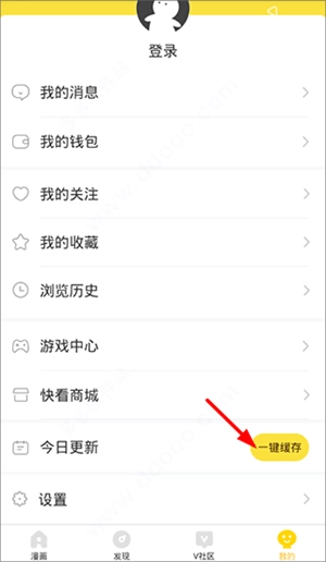 4、在个人主页中找到“今日更新”栏目,点击“一键缓存”即可开始保存漫画。