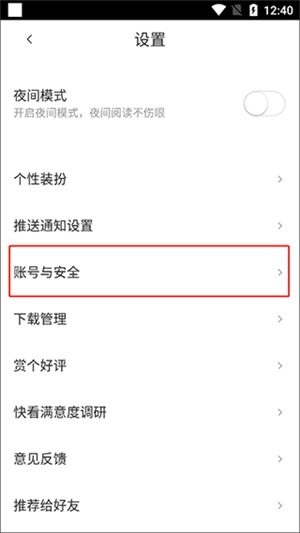 3、在设置页面选择“账号安全”相关选项。