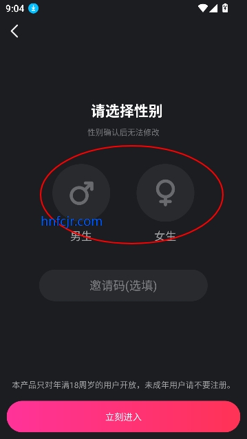 3、接着选择性别就可以进入了。