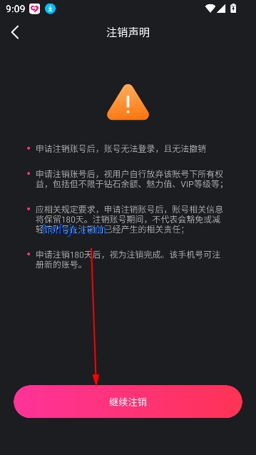 4、系统会提示您确认此操作。阅读相关提示后,点击【继续注销】以完成账号注销过程。