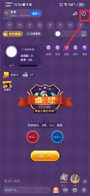 4、创建成功后即可开始桌球对战,如需结束点击退出按钮即可