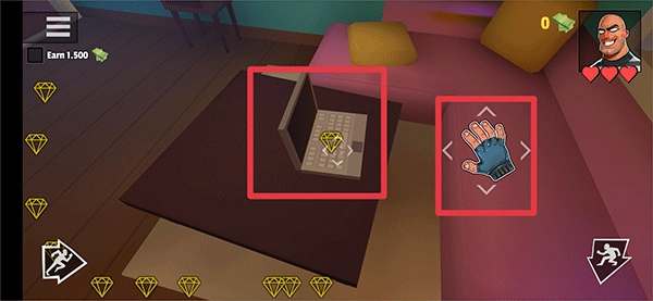 5、之后就可以进入房间啦,在房间内将带有钻石标记的物品拾取后,在右上角会显示你偷窃的金额;