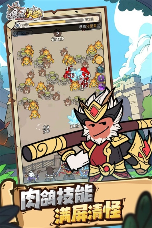 猴哥快跑融合了充满高随机性的Roguelike游戏设计与轻松欢乐的塔防玩法,玩家在闲暇之时,随时随地都能开启一局游戏。在游戏里,玩家可以指挥来自古今中外的名臣良将,去击退来势凶猛的敌人。通过运用策略,让角色之间实现技能配合,打出精妙的操作,从而轻松战胜一波又一波的敌潮。