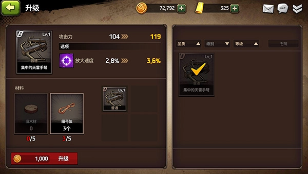 装备能够借助“升级”提升稀有度,然而品质却是无法改变的!故而我们挑选装备时,重点关注的是品质,哪怕是 S 品白色(普通)装备,同样可通过“升级”摇身一变成为最强的。“升级”需依靠消耗相应素材与对应装备来达成,举例而言:白色升绿色需白色素材各 5 个加上白色装备 1 件、绿色升蓝色需绿色素材各 5 个加上绿色装备 2 件……随着稀有度的提高,所需的对应装备数量也会增多。装备还能通过“强化”提升等级,不过它们只能吞噬自身同类,比如头盔只能吞噬头盔、长弓只能吞噬长弓……
