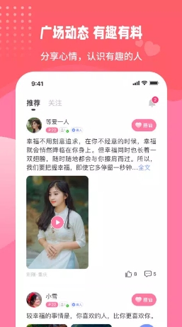 软件的广场动态模式会不定时地推送一些有趣的新鲜资讯,用户可以在这里分享自己的心情动态,从而结识更多有趣的朋友。软件中的私信秒回功能有助于用户与朋友之间的关系迅速升温,使整个脱单过程变得更加简单。