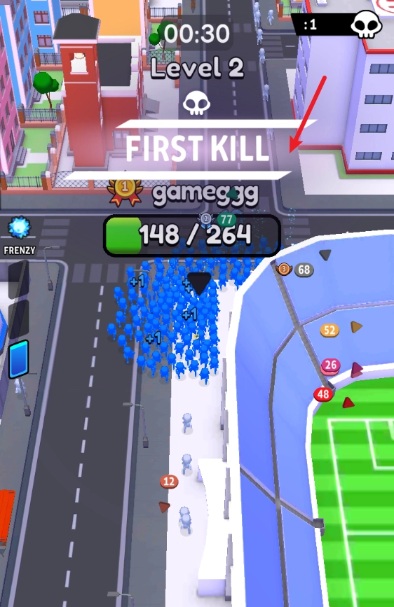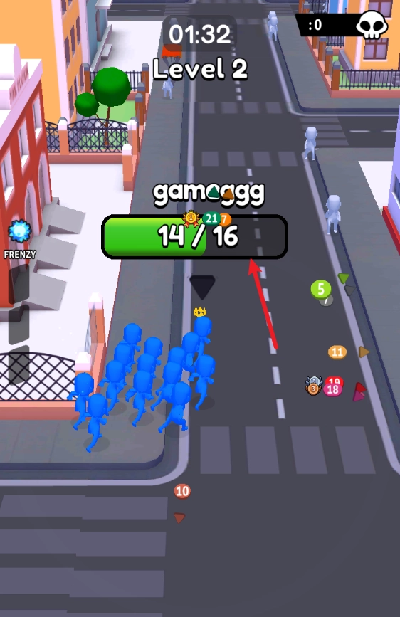 1、玩法设定极具魔性且趣味十足,在城市里尽情肆意奔跑,借此持续增加自身数量,从而赢得最终胜利。