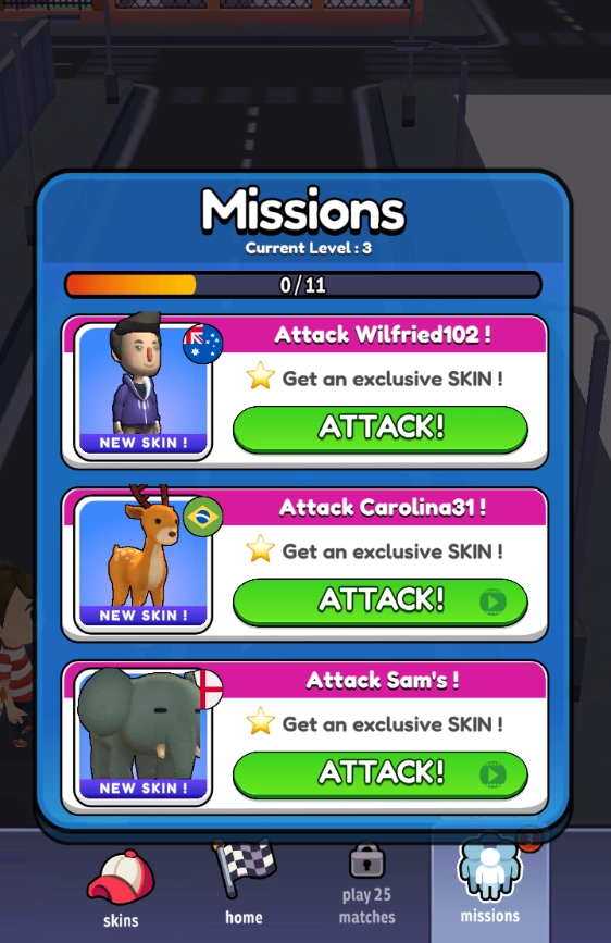 3、自由的更换自己的角色形象,可以通过特殊的挑战模式去解锁各式各样好看的皮肤。