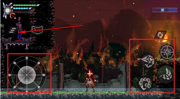 4、剧情结束后,玩家可以自由操控角色进行冒险,左下角是操控人物行走,右下角是射击、跳跃以及其他的功能。