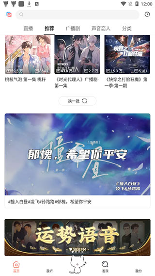 打开手机猫耳FM,在首页选择任意广播剧,点击进去