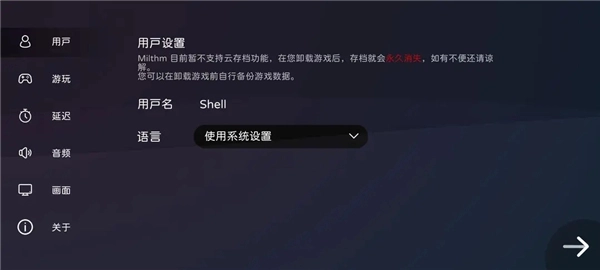 在用户设置模块,玩家能够对用户名进行设置,还能更改语言设置。当前版本提供了中文、繁体中文、英文和日语这四个选项,玩家可从中选择。