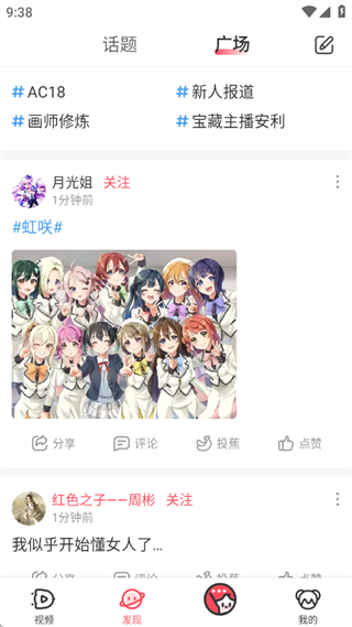 4、平台提供话题广场,在这里可以分享和查看动态。
