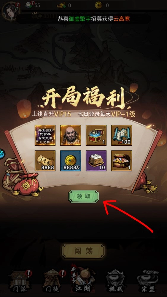勇闯江湖,挑战江湖首领,成功后即可收获海量玄铁。