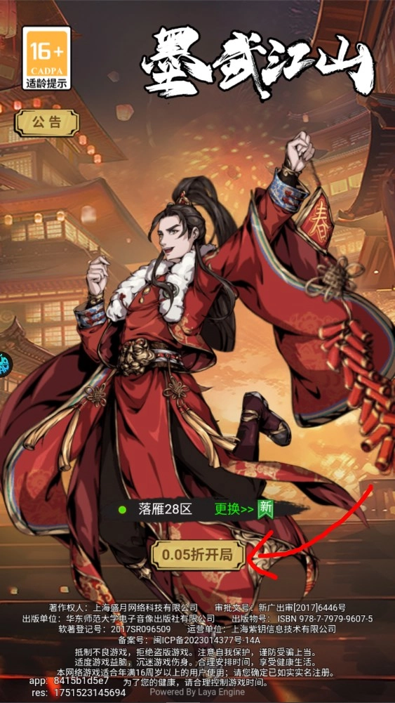 1、登录游戏打开后,径直点击0.05折开局,即可尽情享受福利。