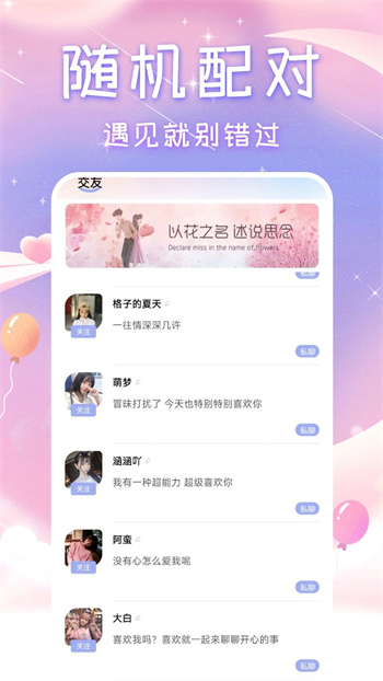 4每次聊天都充满各种趣味,聊天话题没有限制,为用户提供了一种完全独特的线上交友体验。