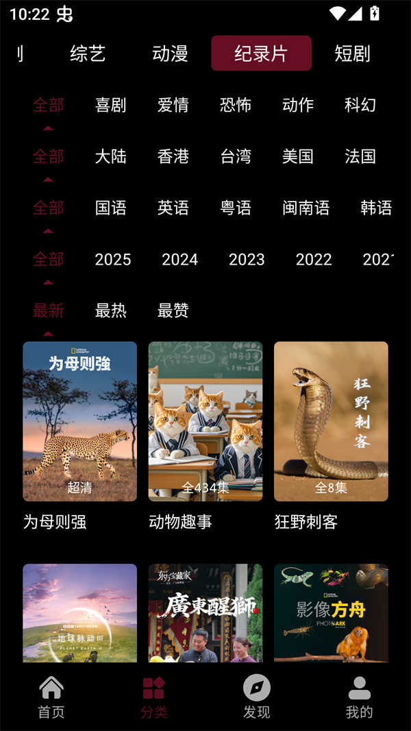 2、接下来我们可以通过分类功能来获取到电影、电视剧、综艺、动漫、纪录片、短剧等多种影视资源。