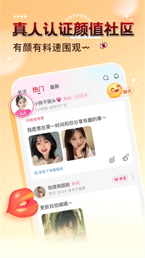 颜值社区:经过真人认证的玩家动态分享平台。