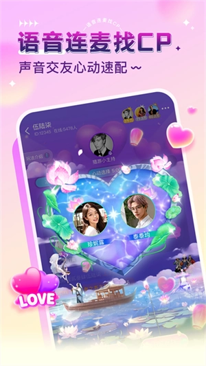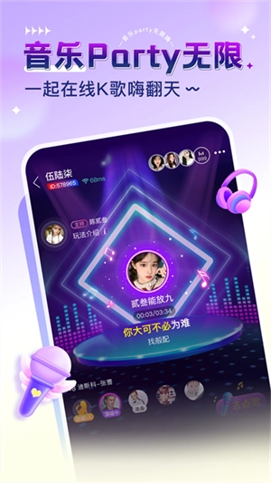 语音互动:连麦聊天室,支持在线点播、K歌互动、桌游交友、深夜电台等多种功能。