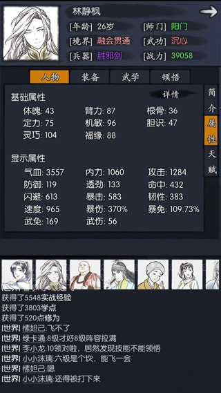 每个人心底或许都曾有过仗剑天涯的武侠幻想,是否还在期待一场充满豪情与侠义的江湖冒险?若你心中仍有这份向往,那么这款作品绝对值得你探索。这是一款别出心裁的武侠主题文字放置游戏,以雅致的水墨笔触勾勒场景,让玩家化身为江湖侠客,在纷争不断的武林中历练成长。在这里,你能结识各路英雄好汉,与他们携手并肩,行侠仗义,还能共同挑战高难度的试炼关卡,体会团队协作的乐趣与成就。游戏中的角色各具特色,性格鲜明,每个人都有独特的战斗风格和专属绝技,你需要根据对手的特点巧妙安排阵容,才能在一次次交锋中克敌制胜。同时,游戏还融合了策略规划、自动挂机、趣味解谜与角色扮演等多元玩法,带来层次丰富的剧情故事,引领你深度沉浸在那个波澜壮阔的武侠天地之中!现在,就来踏上专属于你的江湖征程吧。