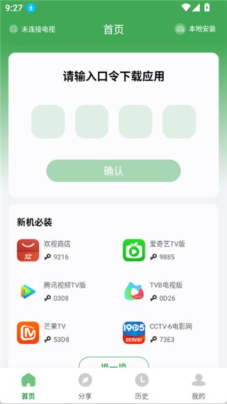 连接好了以后,输入口令,就可以通过手机远程个电视安装各种tv应用了,非常的方便。