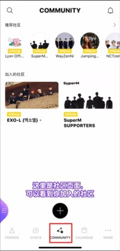 2、注册完成后,点击“社区”