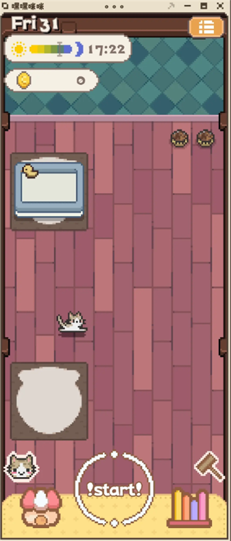 1、玩法上除了养猫咪,还设置了房间装修的内容,玩家在专注和养猫过程中获取的资源。